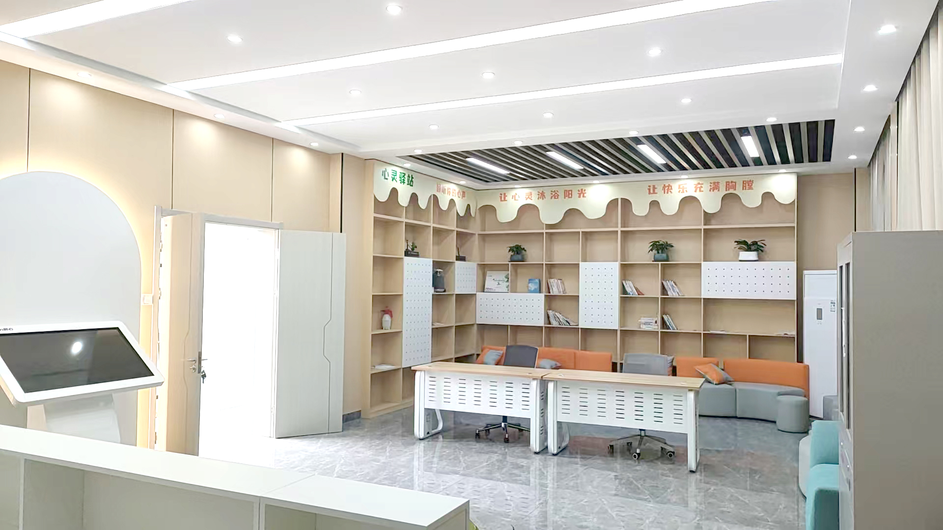 服务与体验:部署朗心心理自助系统。学生可在此自主浏览心理健康知识、进行趣味心理测评、观看舒缓视频,并便捷地预约咨询。互动式大屏以生动形式进行心理科普宣传。这里如同一个“心理资源便利店”,学生可在无压力的环境中探索自我,感受到服务的可及性与私密性。