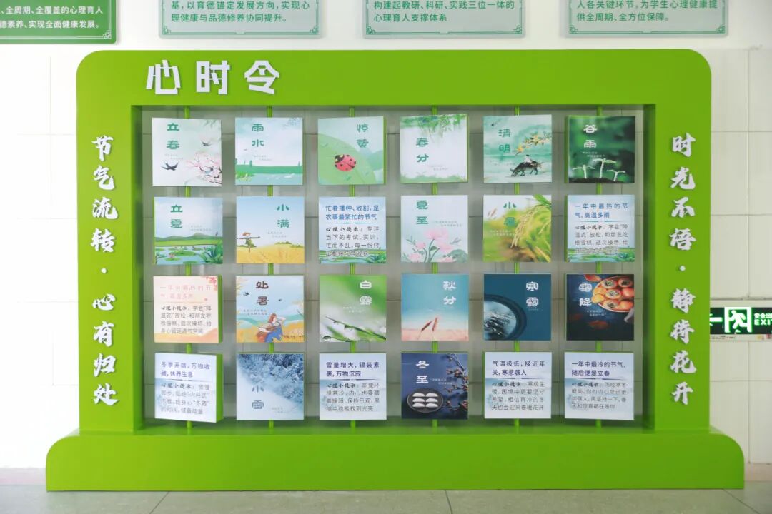 连接各功能室的,是一条别出心裁的“心灵港湾”心理健康文化长廊。它巧妙地将学校的农耕文化底蕴与心理成长意象融合,打造出一个“可视、可感、可参与、可治愈”的实体空间。
